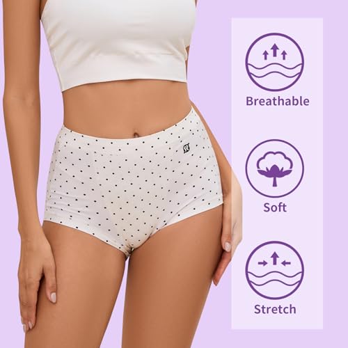 Womens Underwear Pima Cotton High Waisted Ladies Panties Full Coverage Briefs 8 Pack (Regular & Plus Size) 5