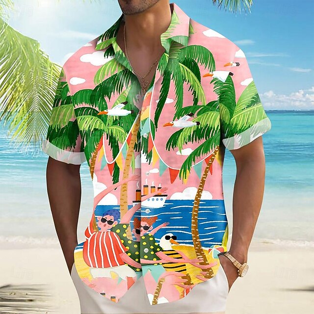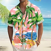 More information about Men's Coconut Tree Tropical Plants Summer Hawaiian Shirt Button Up Shirt Aloha Shirt Short Sleeve Hawaiian Vacation Holiday Beach Wear Summer Spring Turndown 3D Print Collared Shirts Pink