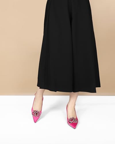 HOT ! Eldof Women Slingback Heels Beaded Rhinestone Pointed Toe Flower Bow High Heel Pumps Shoes 3.5 Inches