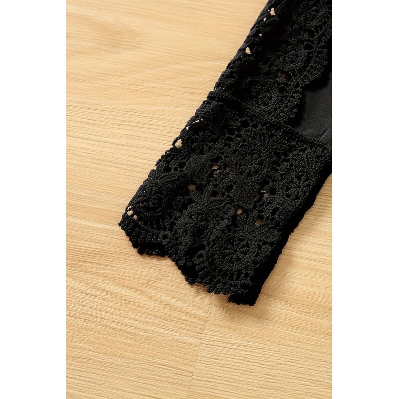 Women's Shirt Plain Daily Stylish Casual Long Sleeve V Neck Regular Tops Daily Holiday Going out Lace Black White Blue Spring 6