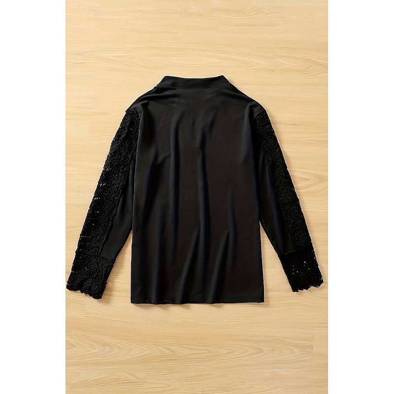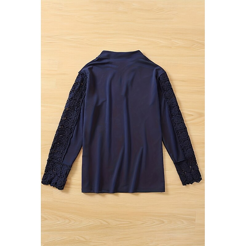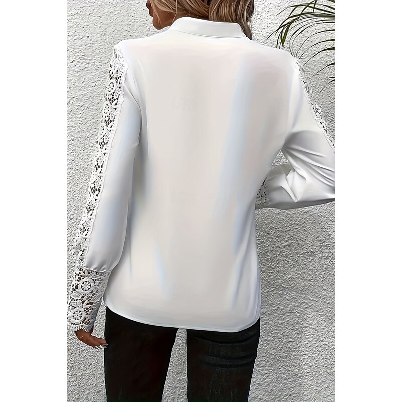 More information about Women's Shirt Plain Daily Stylish Casual Long Sleeve V Neck Regular Tops Daily Holiday Going out Lace Black White Blue Spring