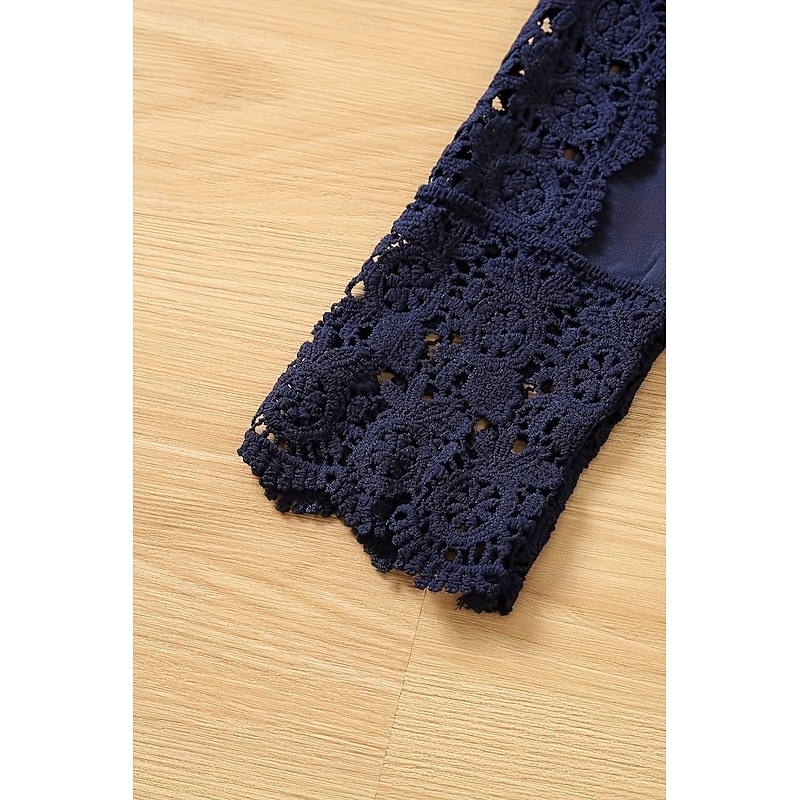 Highlights - Embrace the arrival of spring with this stylish and casual long sleeve top - Made from high-quality polyester fabric for a comfortable wear - Features a delicate lace design on the V neck neckline - Perfect for daily wear and suitable for any occasion - A must-have for women looking to stay chic and fashionable