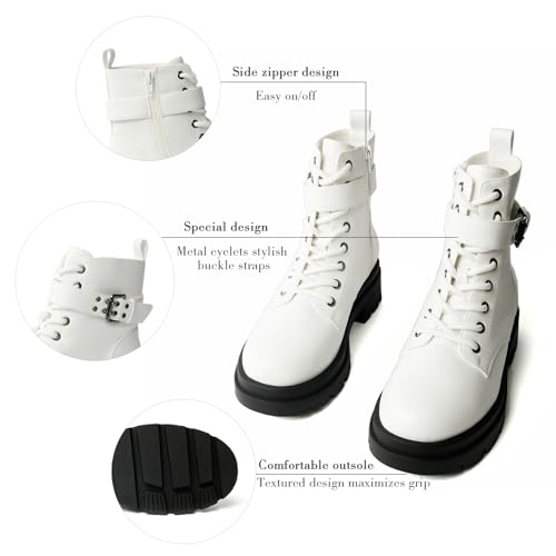 Women's Ankle Boots iconic Low Heel Womens Motorcycle Boots Straps Zippers Lace up Fashion Combat Booties for Women with Buckle Straps