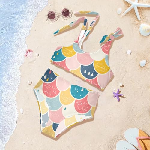 Mermaid Fish Scales Girl 2 Piece Kids Bikini Set Beach Swimsuits Swimming Suits Adjustable Strap 5