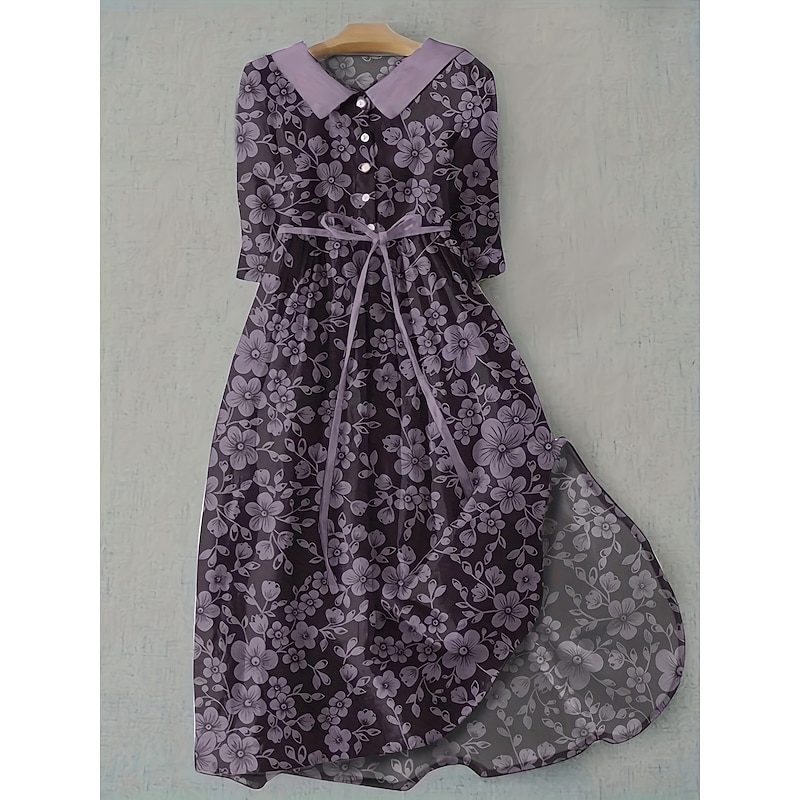 More information about Women's Midi Dress Shift Dress Casual Daily Regular Fit Floral Graphic Half Sleeve Shirt Collar Pink Blue Purple Green Summer Spring