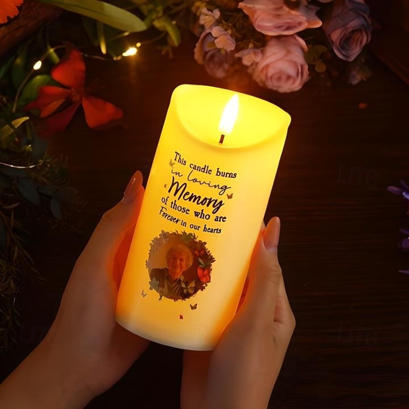 $15.99 - Personalized Memorial LED Candle Custom Photo Sympathy Gifts For Loss Of Loved Ones, This Candle Burns In Loving Memory Elegant Keepsake Light for Bedroom Home Decor Tribute Display 2025. Shop for cheap Memorial Gift online? Buy at lightinthebox.com on sale today!