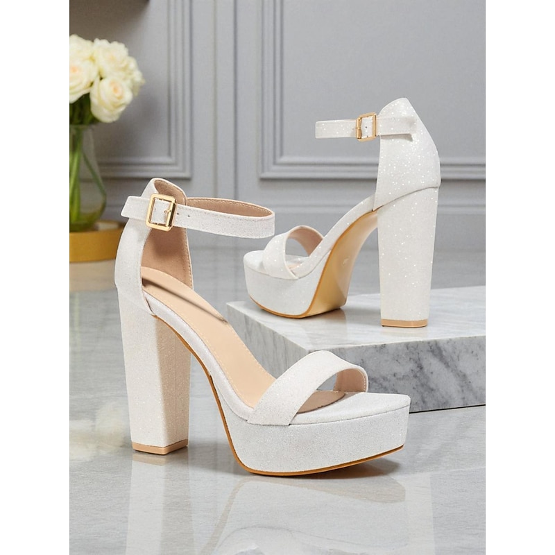 Women's White Glitter Platform Sandals - Open Toe Ankle Strap Block High Heels for Nightlife Party & Clubwear 1