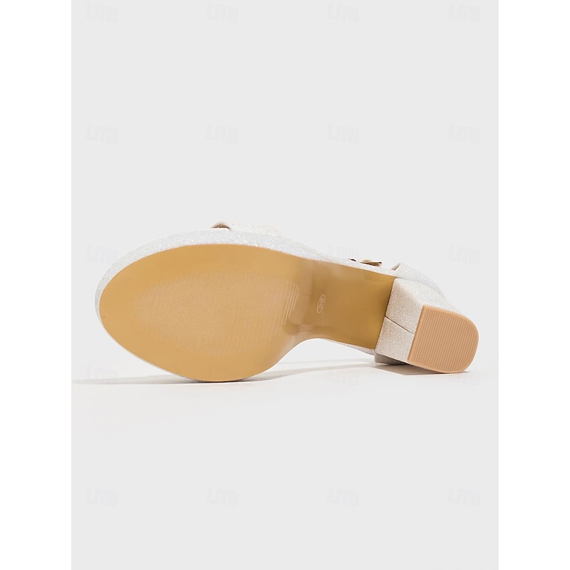 Women's White Glitter Platform Sandals - Open Toe Ankle Strap Block High Heels for Nightlife Party & Clubwear 4