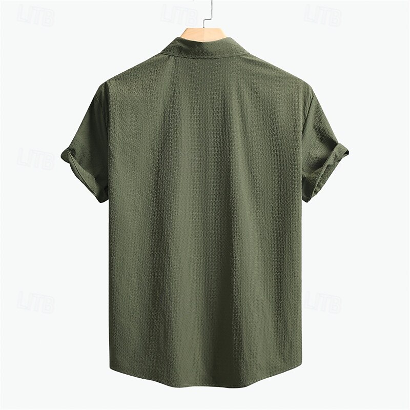 Men's Shirt Summer Shirt Casual Shirt Button Up Shirt Orange Green Beige Short Sleeve Plain Lapel Vacation Daily Clothing Apparel Fashion Casual Comfortable 6