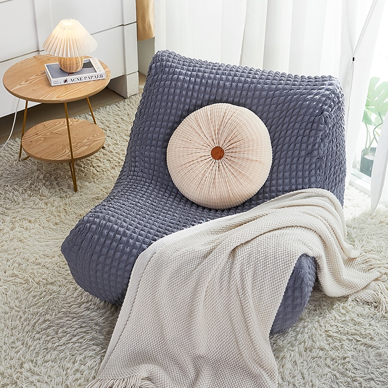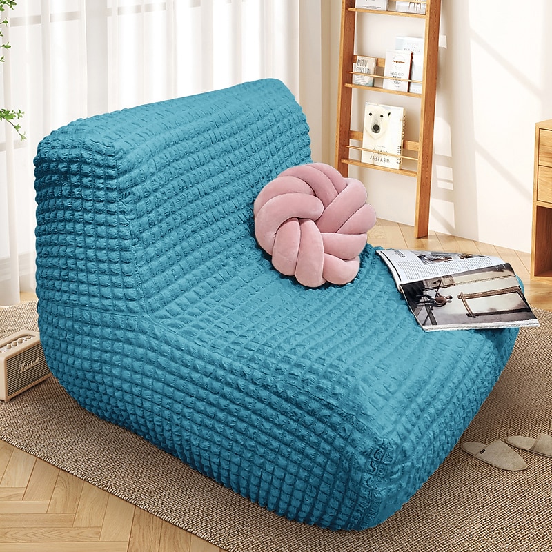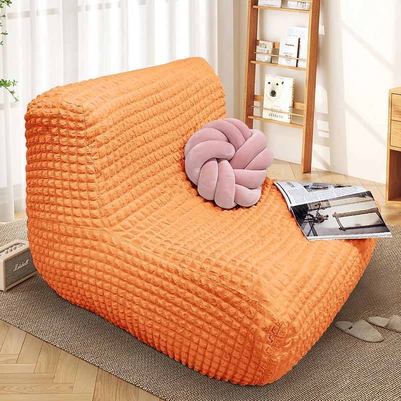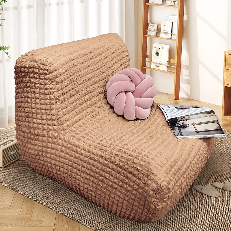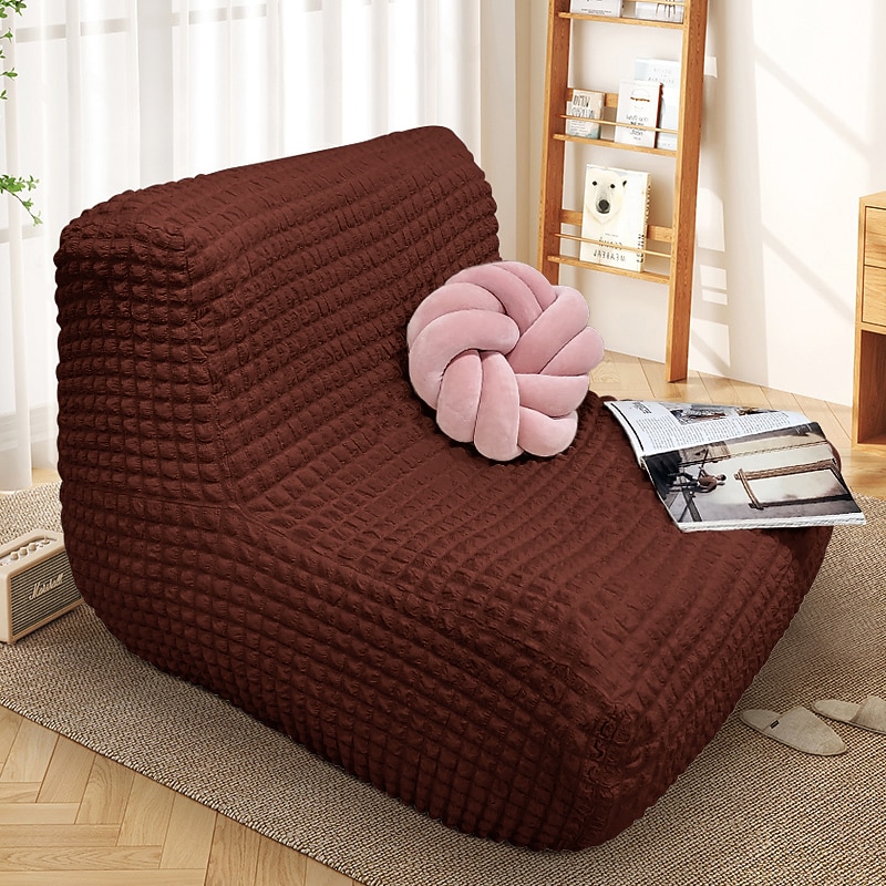 Single Seated Lazy Sofa Cover, Burgundy Armless Floor Sofa Cover, One Piece High Stretch Slipcover, Removable and Machine Washable Cover 37