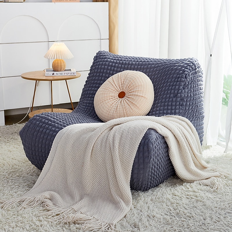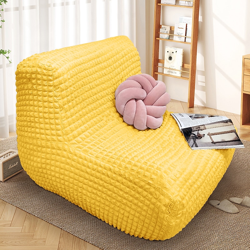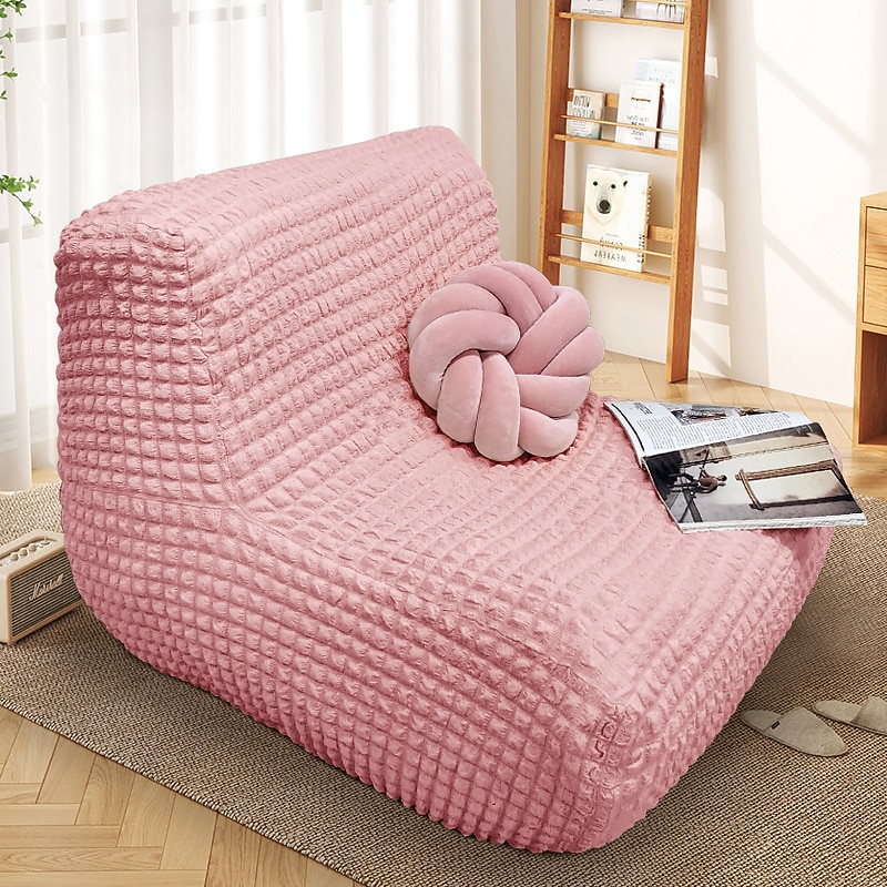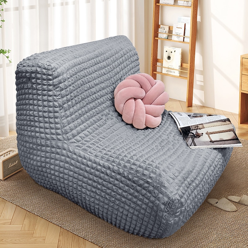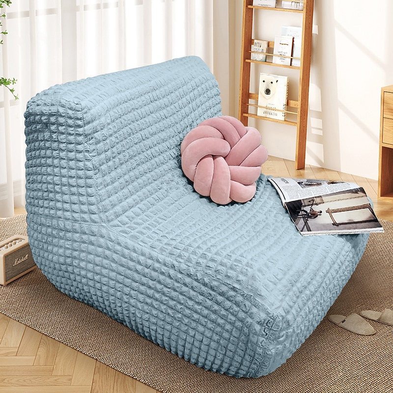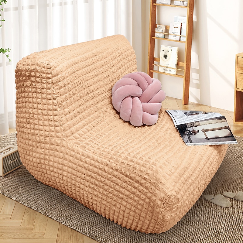 Single Seated Lazy Sofa Cover, Burgundy Armless Floor Sofa Cover, One Piece High Stretch Slipcover, Removable and Machine Washable Cover 37