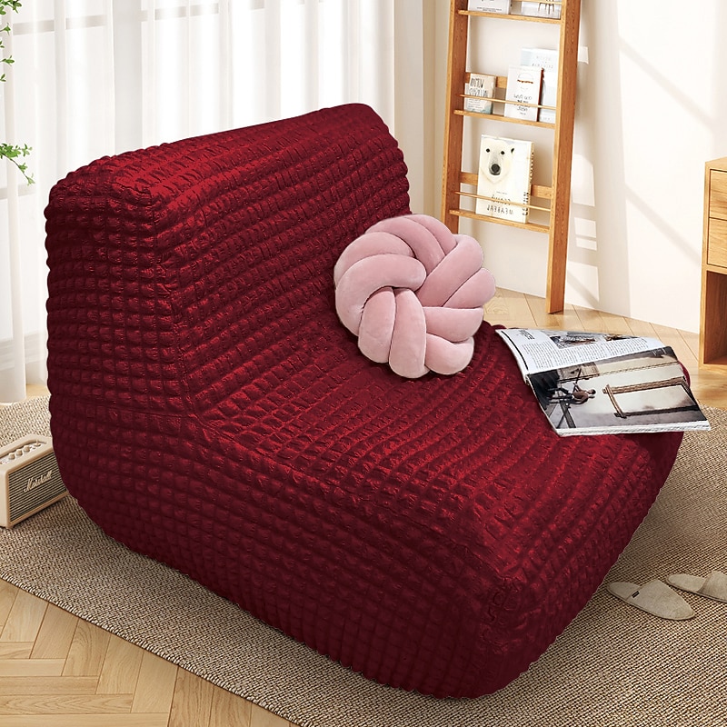 Single Seated Lazy Sofa Cover, Burgundy Armless Floor Sofa Cover, One Piece High Stretch Slipcover, Removable and Machine Washable Cover 10