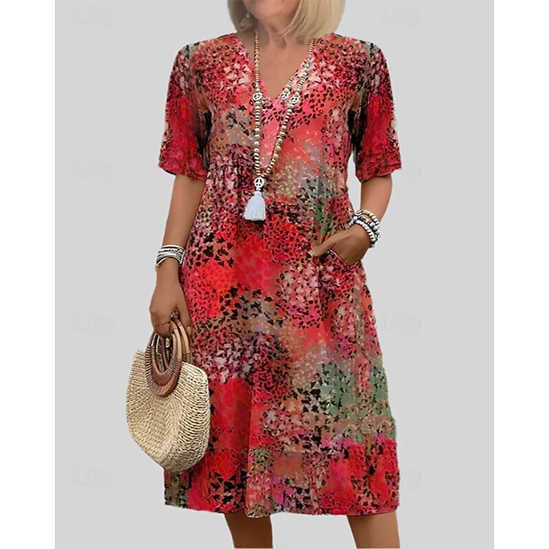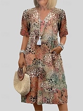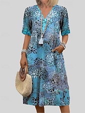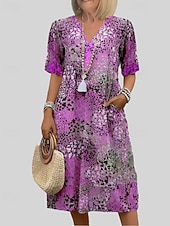 More information about Women's Midi Dress Print Dress Fashion Modern Vacation Going out Regular Fit Graphic Short Sleeve V Neck Red Blue Purple Khaki Spring Fall