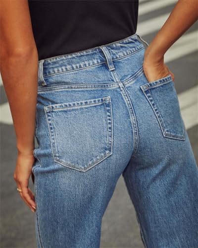 • High-Waisted Jeans: Crafted from soft denim fabric, these jeans are suitable for different seasons. The loose wide-leg cut ensures comfort, and the right amount of stretch provides a flattering fit. The high-waisted design accentuates your waistline, make you look more elongated.