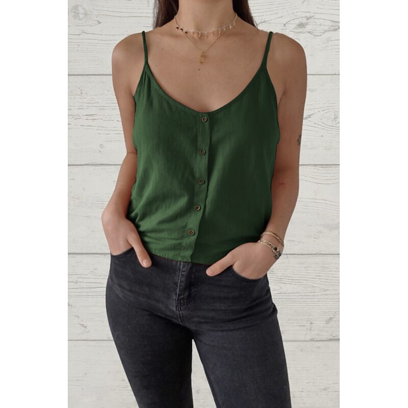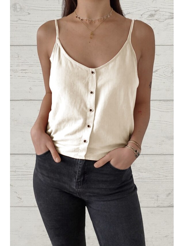 More information about Women's Shirt Linen Shirt Cotton Linen Shirts Plain Daily Stylish Casual Sleeveless Strap Regular Tops Daily Going out Buttons Black White Brown Green Summer