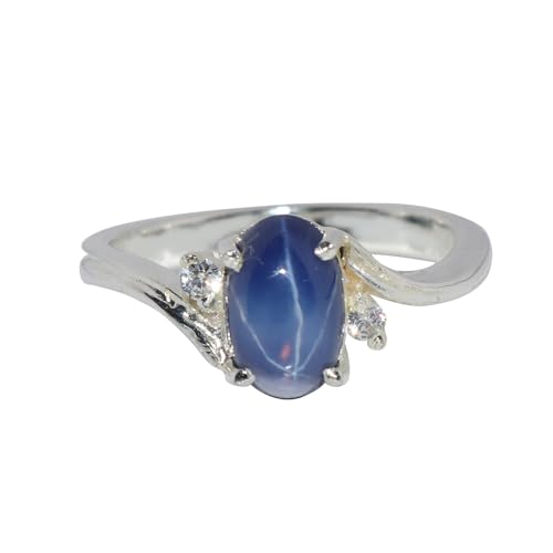 GEMHUB Oval Shape 3.2 Ct Triology Style Natural Blue Star Sapphire 925 Sterling Silver Engagement Ring for Valentines 3