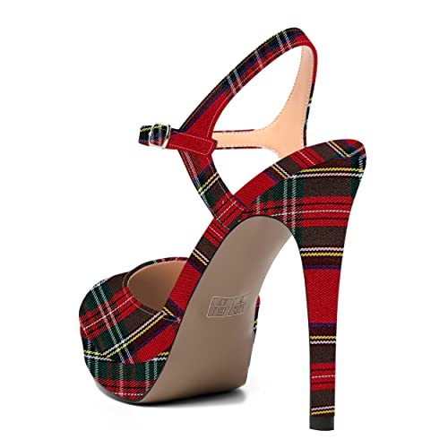 ROSERWISH Womens Party Sexy Patent Buckle Platform Evening Ankle Strap Pointed Toe Stiletto High Heel Pumps Dress Shoes 5 Inch 4