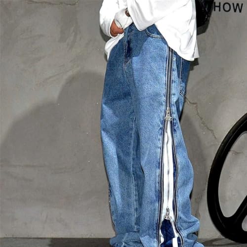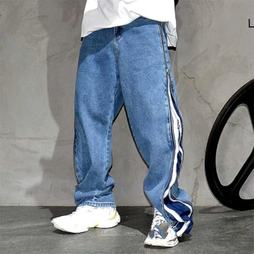 Men’S Streetwear Side Zipper Baggy Stacked Skateboard Denim Cargo Pants Slim Fit Button Fly Midweight Full Length Jeans