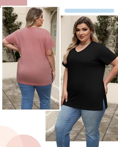 Womens 4 Pack V Neck Short Sleeve T Shirts Casual Loose Fit Tops Flowy Basic Tee Side Split Outfits Clothes 4