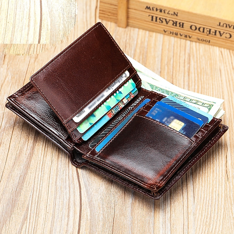 Men's Wallet Coin Purse Credit Card Holder Wallet Envelope Bag Cowhide Shopping Daily Large Capacity Waterproof Lightweight Black Coffee 7