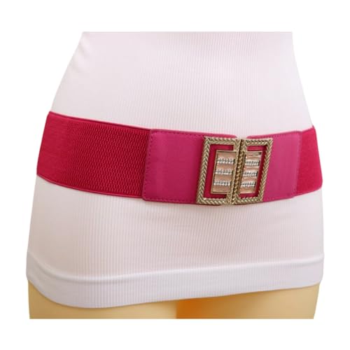 Generic Women Pink Elastic Fashion Belt - Hip High Waist Wide Band Metal Bling Square Buckle S M z099 7