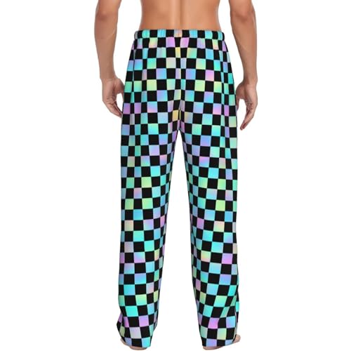 Mens Pajama Pants - Iridescent Checker Print Soft Sleep Lounge Pants For Men, Casual Pj Bottoms With Pockets 1