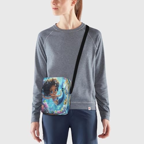 Crossbody Bag African American Black Girl Mermaid Princess Messenger Bag for Women Men Purse Shoulder Bag Satchel Bag with Adjustable Strap 214B8820 5
