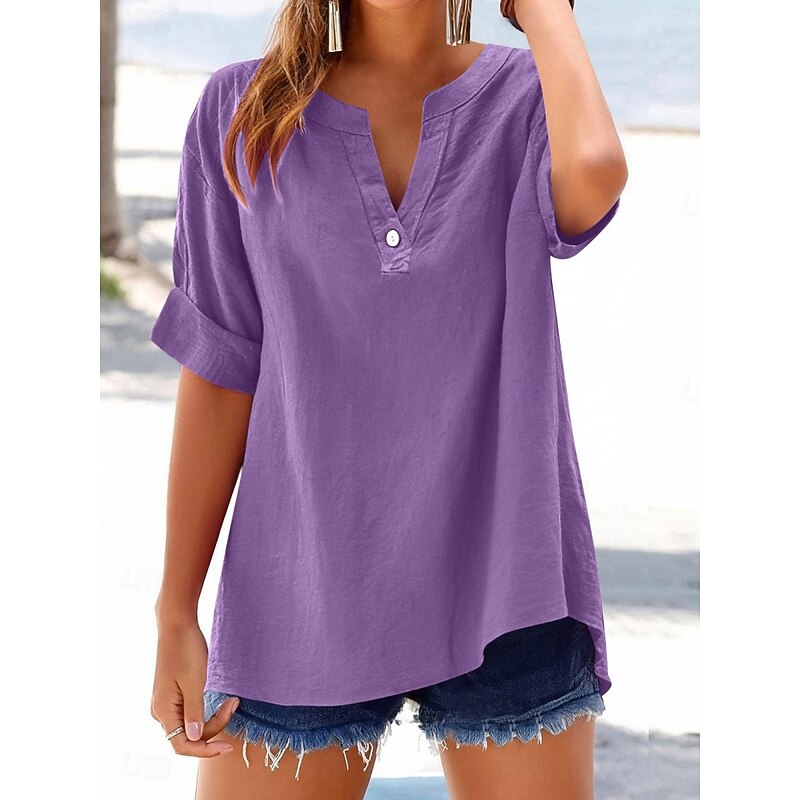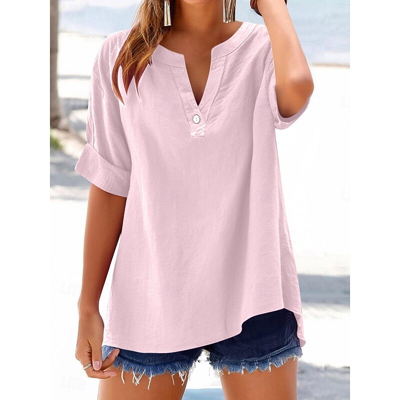 $19.99 - Women's Blouse Plain Basic Casual Short Sleeve Notched Neck Regular Tops Daily Buttons Pocket Red Blue Purple Beige Summer Spring 2025. Shop for cheap Shirts online? Buy at lightinthebox.com on sale today!