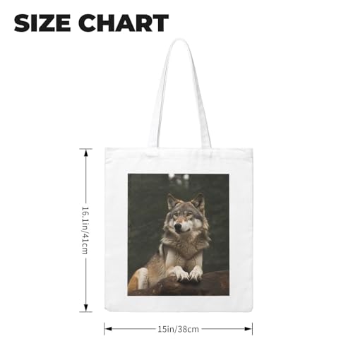 Gray Wolf Large Canvas Tote Bag Cute Travel Shoulder Bag Reusable Washable Shopping Grocery Bags For Women Men 5