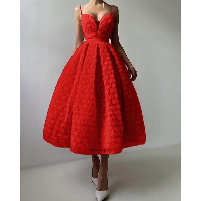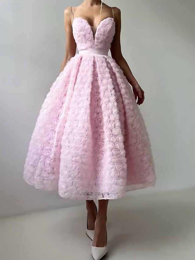 More information about A-Line Cocktail Dresses Celebrity Style Dress Formal Wedding Guest Floor Length Sleeveless Plunge Neck Belt / SashDress Tulle with Rose Flower