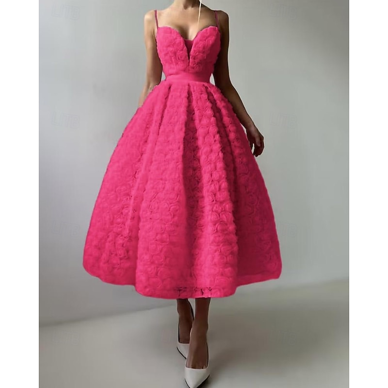 A-Line Cocktail Dresses Celebrity Style Dress Formal Wedding Guest Floor Length Sleeveless Plunge Neck Belt / SashDress Tulle with Rose Flower 9