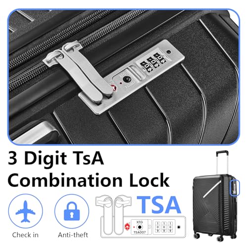 • 【TSA Lock】Equipped with a TSA customs password lock, our hardshell luggage sets provide enhanced security. This innovative design prevents violent damage to the luggage, allowing only TSA agents to inspect your bags without damaging the lock during travel