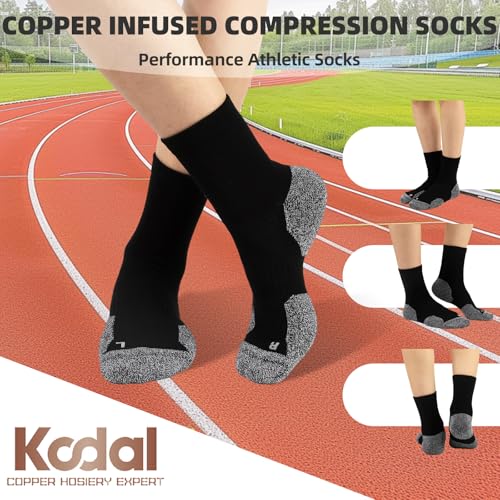 • Kodal Copper Infused Compression Socks for Men & Women – Moisture-Wicking, Odor Control Athletic Socks with Arch Support – Cushioned, Breathable for Running, Golf, Hiking, Basketball