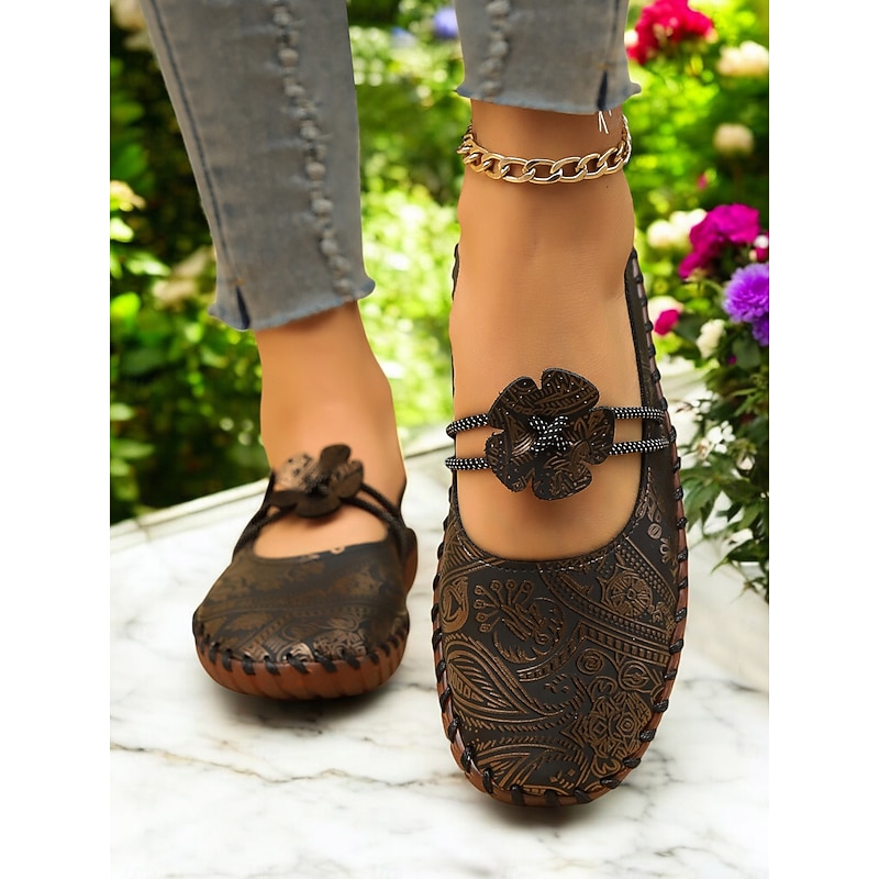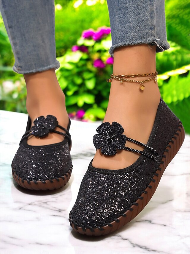 HOT ! Women's Glitter Flats – Sparkly Mary Jane Loafers with Flower Decoration, Comfortable Walking Shoes for Party & Casual Wear