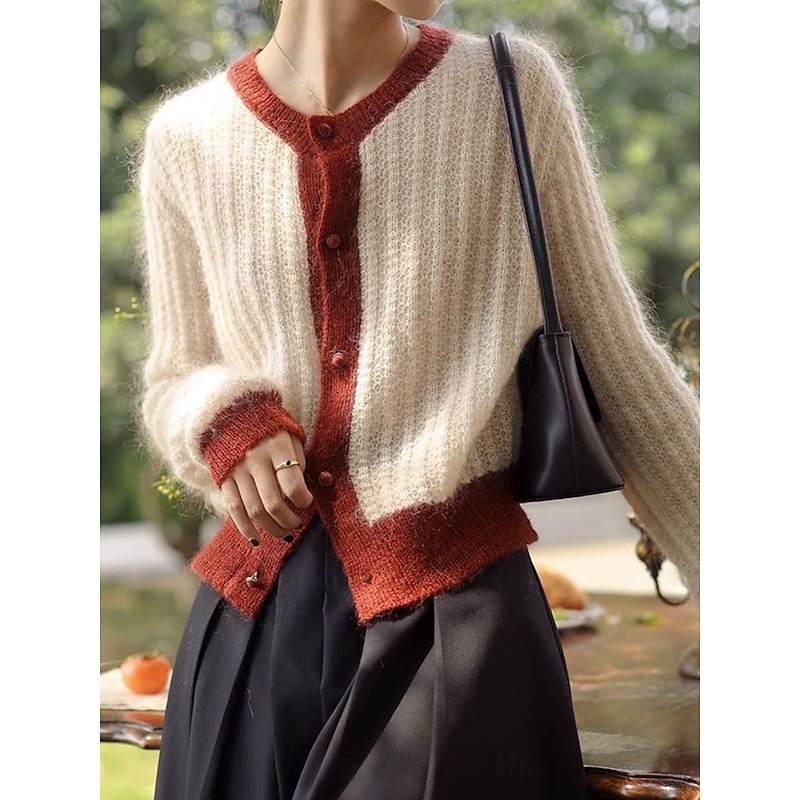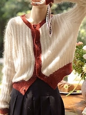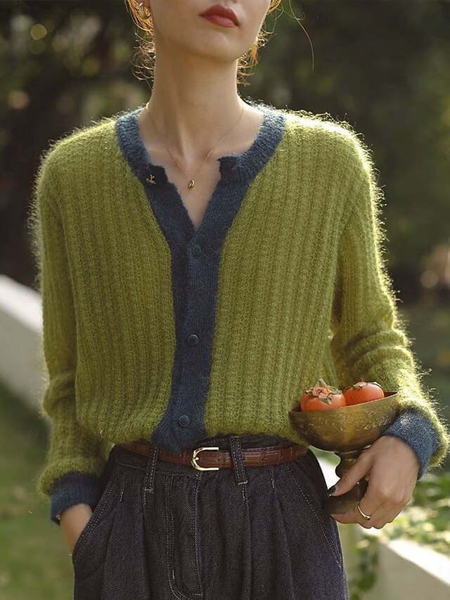 More information about Women's Sweater Cardigan Casual Soft Pure Color Ribbed Crew Neck Buttons Knitted Long Sleeve Regular Tops Knit Outdoor Daily Weekend Green Apricot Fall Winter