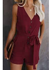 More information about Women's Jumpsuits Patch Pocket Casual Summer Romper Solid Color Basic Holiday Daily Wear Regular Fit Sleeveless Wine Blue White S M L Spring