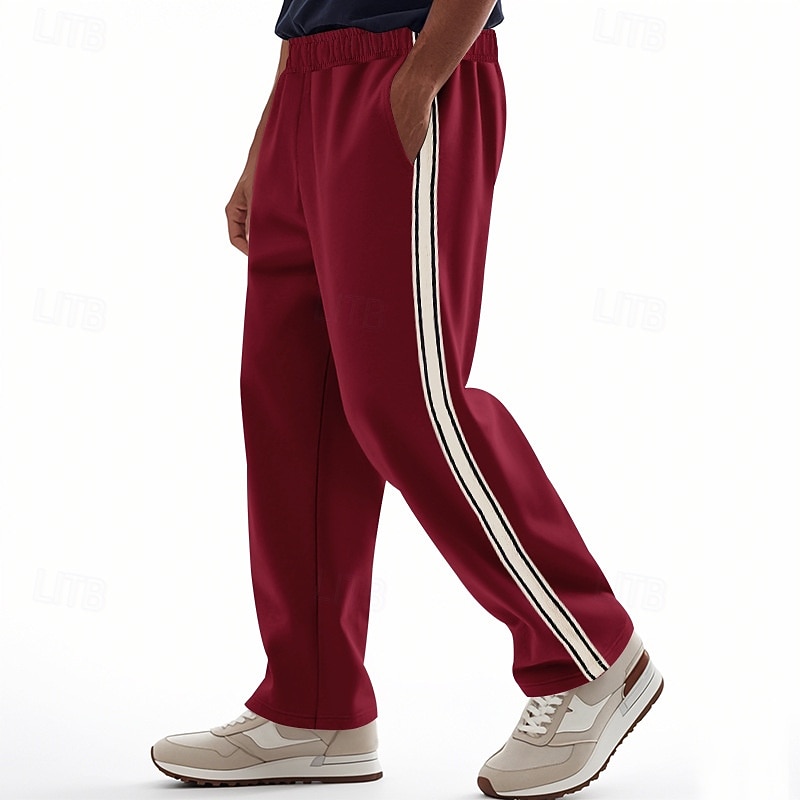 Men's Athletic Pants Sweatpants Trousers Casual Pants Drawstring Side Stripe Straight Leg Plain Comfort Breathable Full Length Outdoor Casual Running Sports Fashion Black Red 11