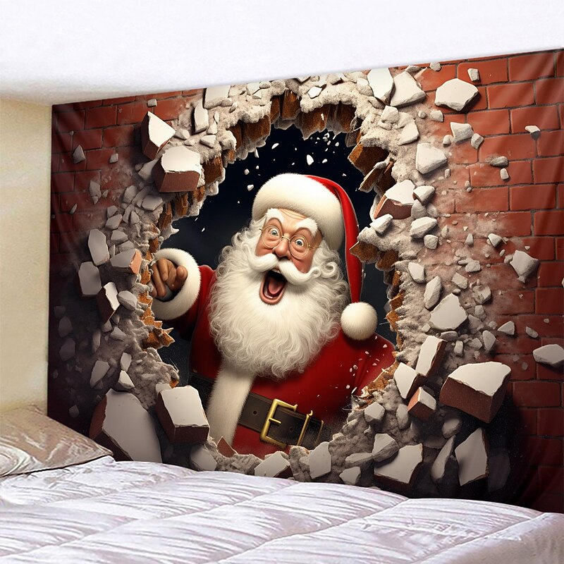 Christmas Decorations Santa Broken Wall Hanging Tapestry Wall Art Xmas Large Tapestry Mural Decor Photograph Backdrop Blanket Curtain Home Bedroom Living Room Decoration