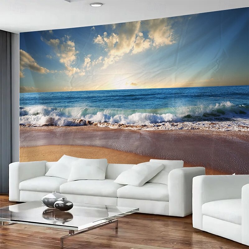 HOT ! Sea View Beach Landscape Hanging Tapestry Mural Art Large Tapestry Mural Decoration Photos Background Carpet Curtains Home Bedroom Living Room Decoration