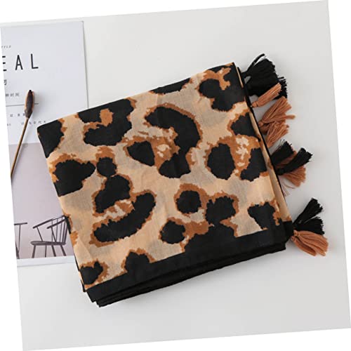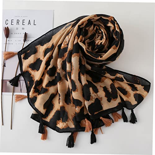 KESYOO Leopard Print Shawl Scarf for Women Stylish Sun Block Scarf with Tassels Comfortable Cotton Travel Beach Accessory 1