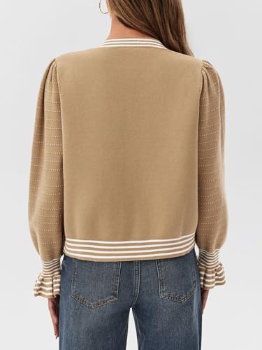 More information about Saodimallsu Womens Cropped Cardigan Striped Puff Ruffle Sleeve Cute Graphic Button Bow Knitted Sweater Outerwear