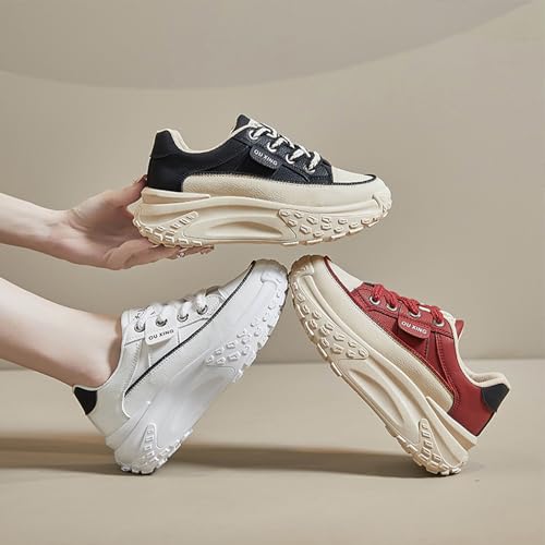 Women's Leather Platform Increasing Sneakers Fashion Chunky Lace Up Low Top Sports Trainers High Top Casual Non-Slip Walking Dad Shoes 6