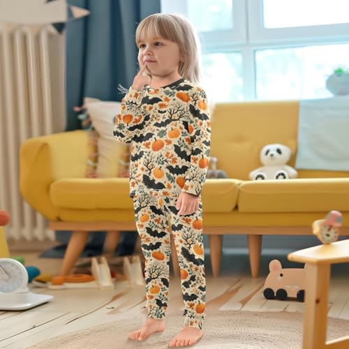 Pajama Sets Long Sleeve Halloween Themed Bat Pumpkin Pattern Soft Comfy Sleepwear 2 Piece PJS 3-8T 2