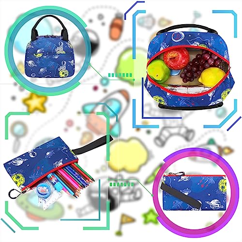 Dorlubel Lightweight Space Backpack for Boys School Bag with Insulated Lunch Tote & Pencil Case Preschool Kindergarten Elementary Book Bag Set(Yellow Space Astronaut Set)