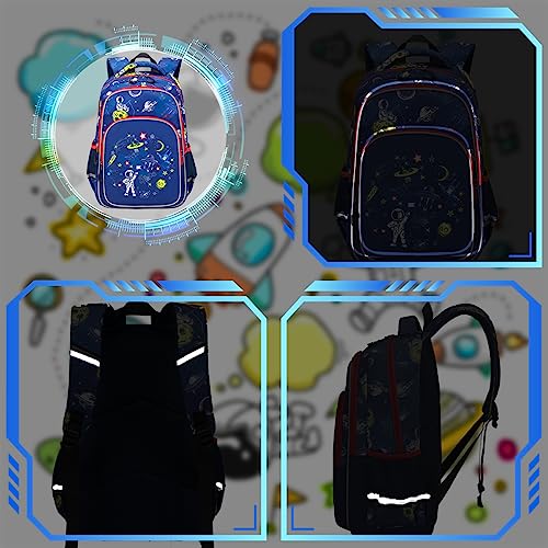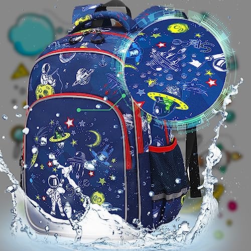【Lasting Material】 Nylon Fabric outside, Anti-scratch, Waterproof, Fine stitching, SBS smooth zippers. Polyester inside, soft material, anti-wrinkle, easy to clean.【Perfect Size】: 12.7 * 11.8 * 7.08 Inch backpack,optional 10.2*7.8*6.3 inch lunch bag and 8.2*4.7*1.2 pencil case. Adequate CAPACITY for children daily and school supplies, and the MULTI-POCKET design helps kids’ easy sorting.【Multiple Themes】We have different sizes for the backpacks with different popular themes: Outer-space,Dinosaurs,Rugby. The collection of the boys backpack preschool captures the spirits of imagination and fashion which inspire your little one to own their dreams.This backpack is great for boys of 5-12 years old.【Spine Protection】More plush: Ergonomically design shoulder straps to reduce stress and protect kids spine. Breathable air cushioned back design make preschool backpack comfortable for little kids' shoulders and back.【Helpful Features】 Reflective strips are available on both front and back, guarding kids’ safety in the dark environments. Non-slip chest buckle stabilizes backpack when kids run or jog.【After Service】Any problem within 1 year, please let us know to solve. Perfect for everyday use. premium materials and excellent craftsmanship ensure long-lasting durability.