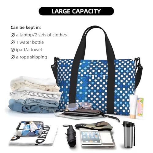 HOT ! Blue Polka Dot Pattern Versatile Personal Item Travel Bags for Women - Spacious Duffel Bags for Traveling, Gym Bags for Men