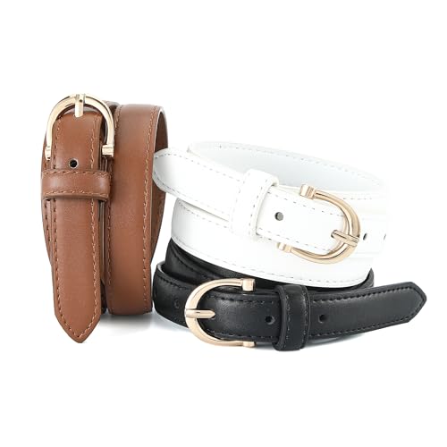 Earnda Women Skinny Faux Leather Belts for Dress Ladies Thin Waist Belt with Gold Buckle for Jeans Pants 3