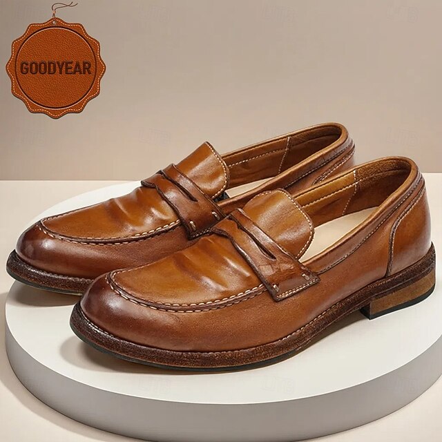 HOT ! Men's Brown Leather Loafers with Moccasin Stitching and Goodyear Welt - Comfortable and Elegant Casual Shoes for Everyday Wear