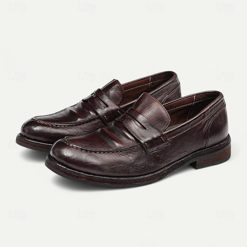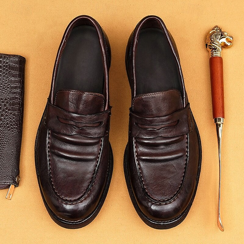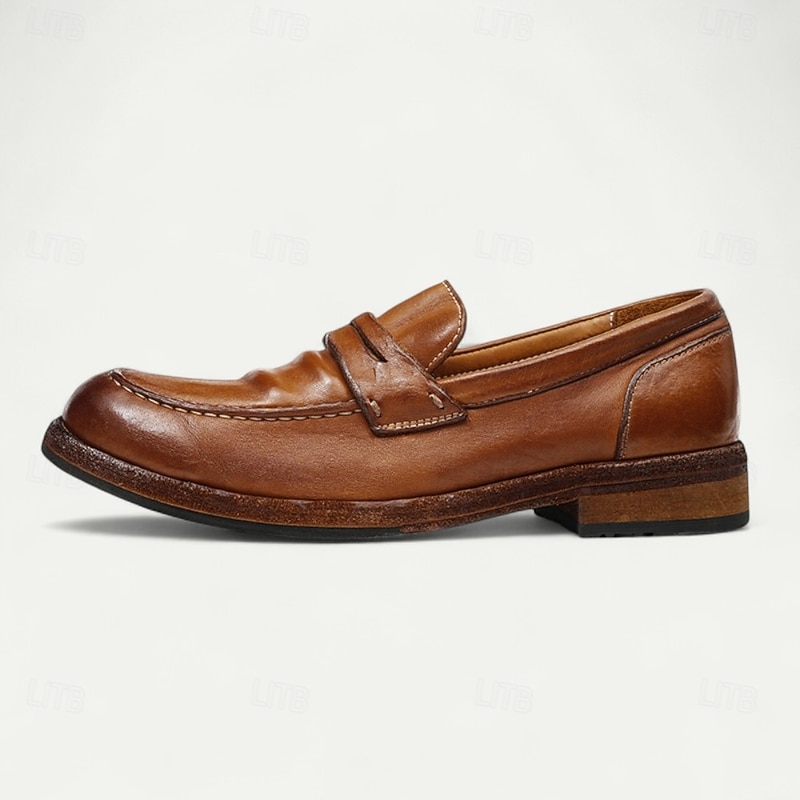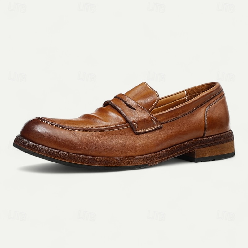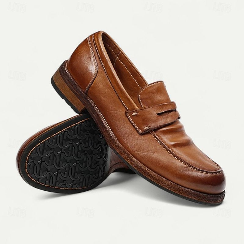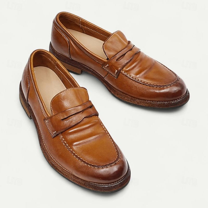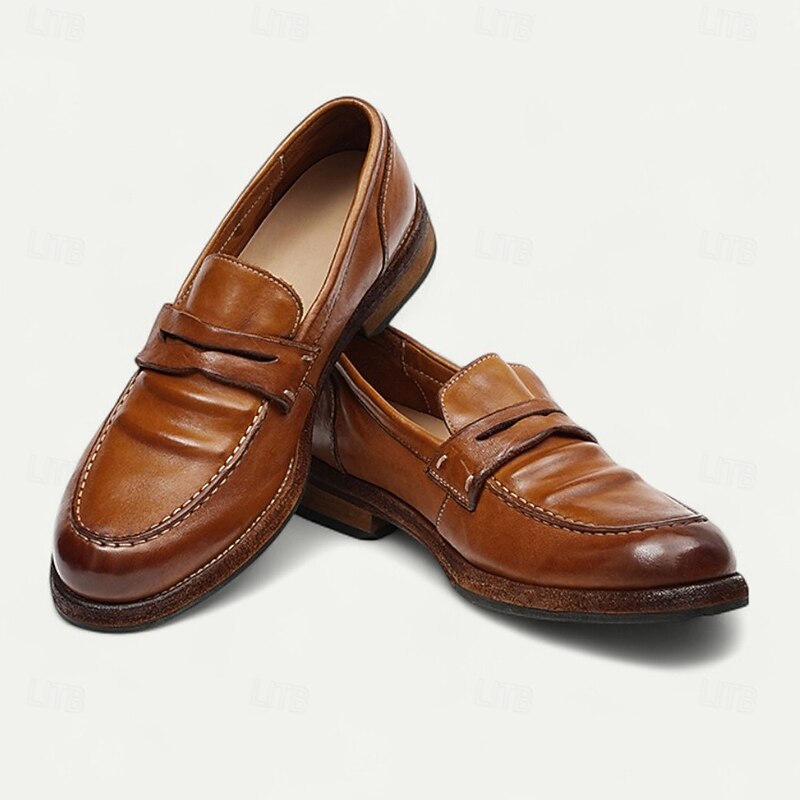 Men's Brown Leather Loafers with Moccasin Stitching and Goodyear Welt - Comfortable and Elegant Casual Shoes for Everyday Wear 23