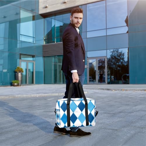 Blue Rhombus Travel Duffel Bag for Men Women White Argyle Sports Gym Bag Waterproof Weekender Overnight Bags Foldable Carry on Backpack for Swim Yoga Fitness Workout 1